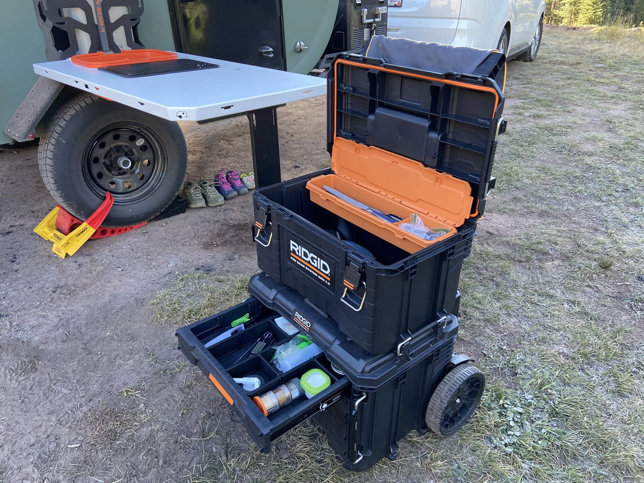 For many years, I wrestled with how to best setup my kitchen supplies. I trialed food crates, totes/bins, bags, coolers, hangable pouches, etc. Each had its own advantage, but regardless, I often found myself digging through mess and making frequent trips to-and-from the car.